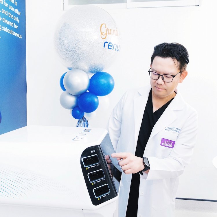 นายแพทย์สมบูรณ์ ไหวพริบ ศัลยแพทย์มือหนึ่งประจำ APEX Surgery Hospital ร่วมรับมอบเครื่องมือ New J-Plasma รุ่นใหม่ที่ใช้ในการยกกระชับผิวหลังดูดไขมัน เพื่อเสริมทัพความเป็นผู้นำด้านการศัลยกรรมตกแต่งของไทย